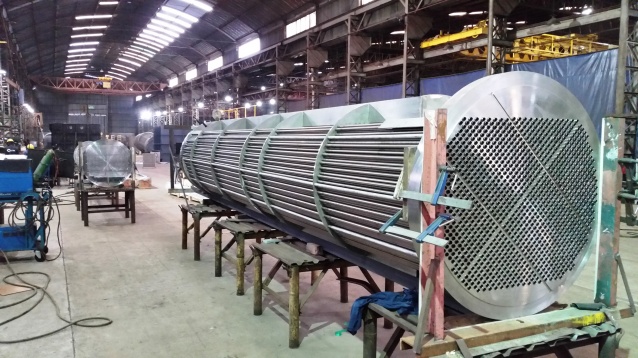 Las placas portatubos fueron fabricadas en acero inoxidable Duplex y se emplearon tubos en acero inoxidable y titanio.